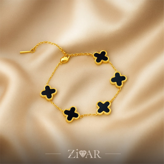 Black Enamel Clover Bracelet - Zivar Jewelry