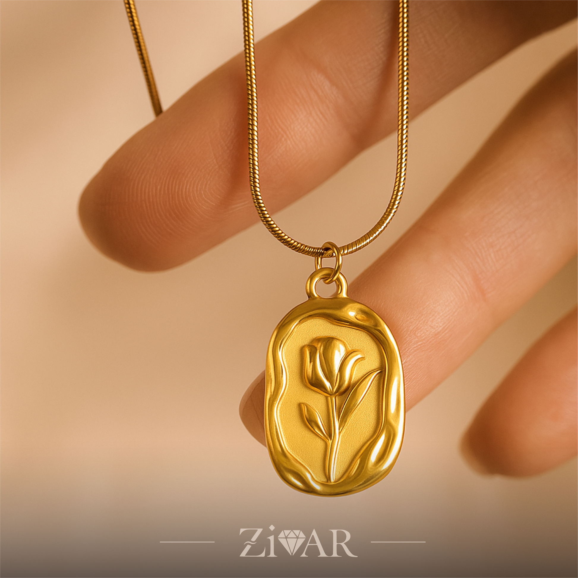 Elevate your jewelry collection with this sophisticated Golden Rose Pendant, meticulously crafted from premium stainless steel. The lustrous rose gold finish delivers timeless elegance while the durable stainless steel construction ensures exceptional longevity and resistance to tarnishing. Perfect for layering or wearing as a standalone statement piece, this pendant complements both casual and formal occasions. The versatile design transitions seamlessly from day to evening wear, making it an essential addition to any discerning jewelry enthusiast's wardrobe. Hypoallergenic and easy to maintain, this pendant offers enduring beauty without compromise, embodying Zivar's commitment to everyday elegance.